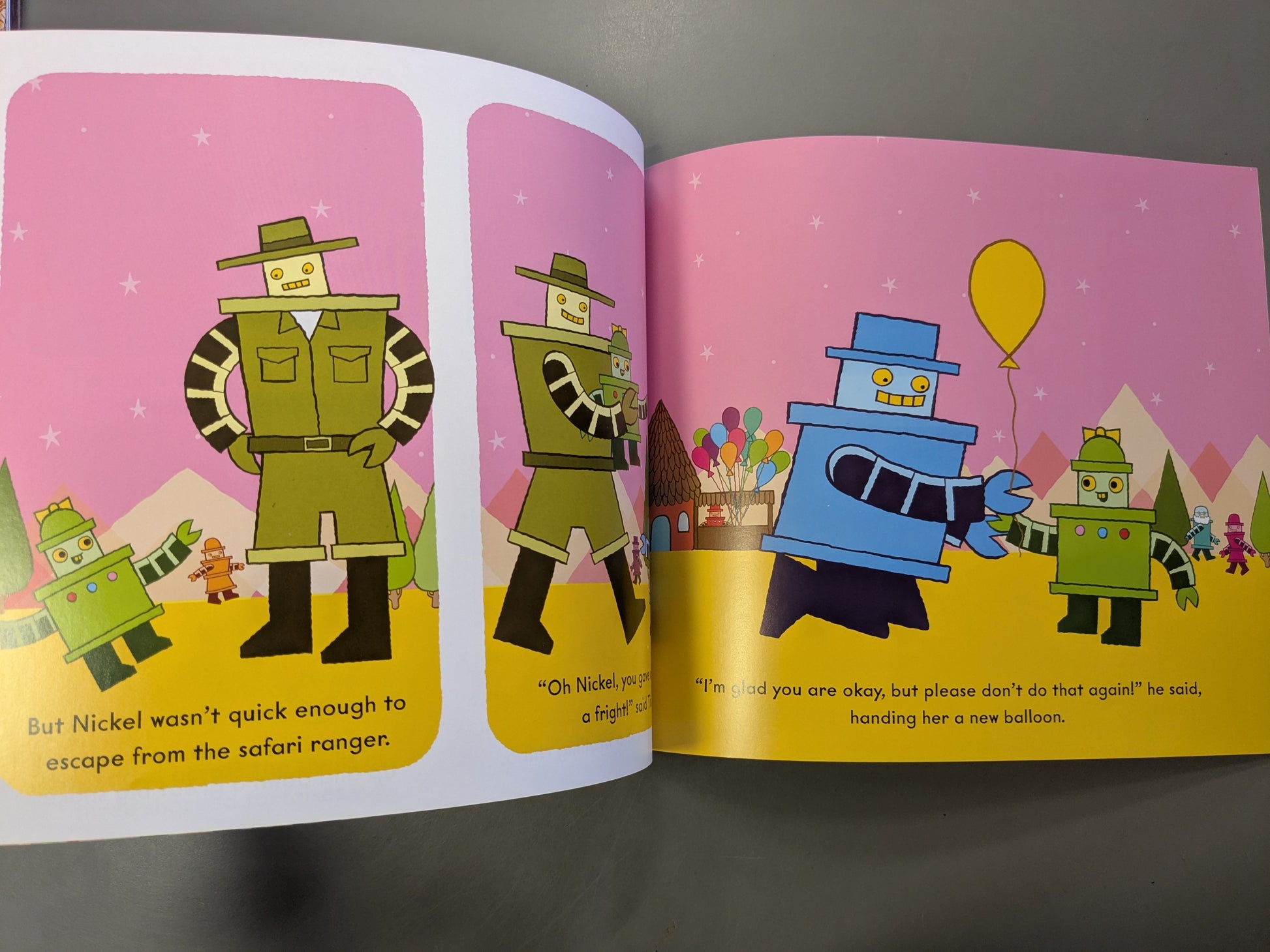 Tin is looking after his little sister Nickel one afternoon when she grabs hold of a balloon and floats away! Tin and his dog Zinc set off in hot pursuit as she floats toward the big city. Can they rescue her before she drifts too far?