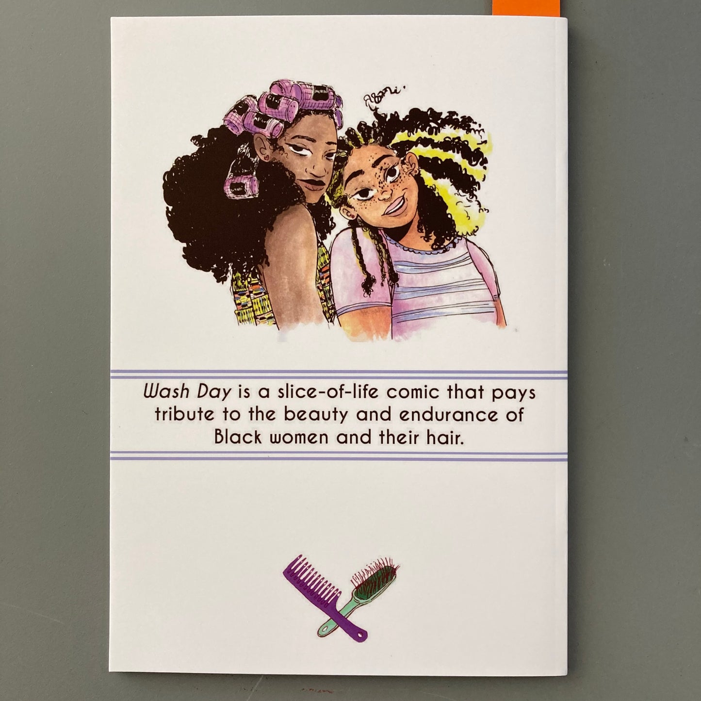 Wash Day is a slice-of-life comic that pays tribute to the beauty and endurance of Black women and their hair. The story follows Kimana, a 26-year-old woman living in the Bronx, as she cares for her long, thick hair. As Kim goes through her Sunday morning rituals, we see the highs and lows of her day—fresh coffee, rising rent, girl talk and catcalls.