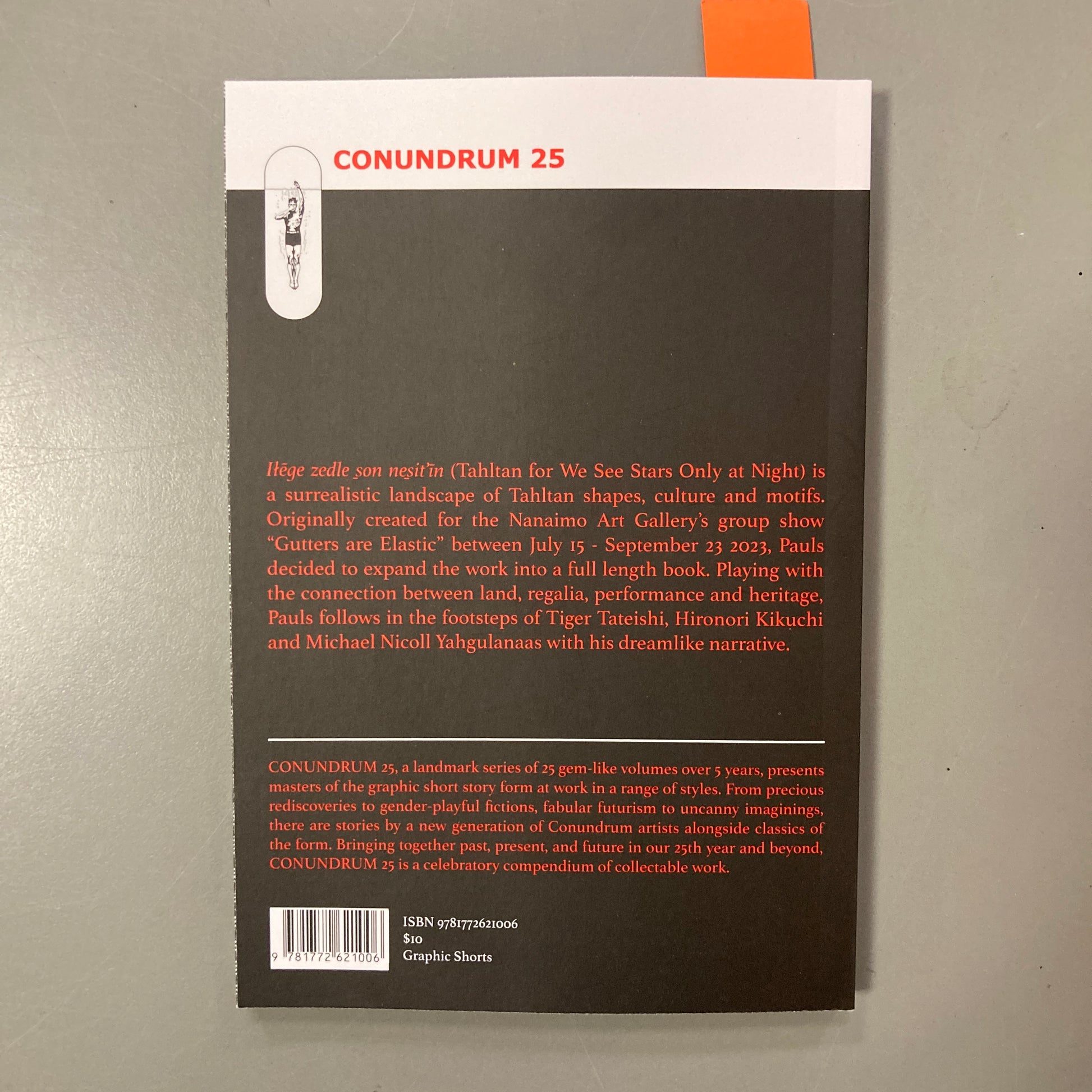 Lłēge zedle s̱on nes̱it’īn (Tahltan for we see stars only at night) is a surrealistic landscape of Tahltan shapes, culture and motifs. Originally created for the Nanaimo Art Gallery’s group show “Gutters are Elastic” between July 15 to September 23, 2023, Pauls decided to expand the work into a full length book.