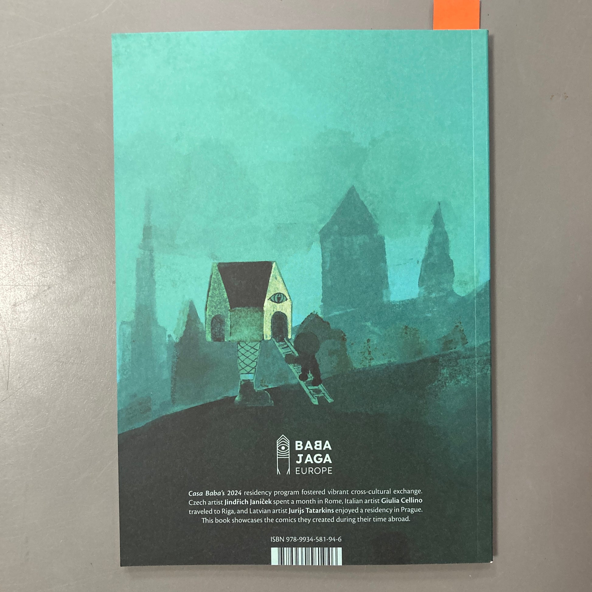 Casa Baba's 2024 residency program fostered vibrant cross-cultural exchange. Czech artist Jindřich Janíček spent a month in Rome, Italian artist Giulia Cellino traveled to Riga, and Latvian artist Jurijs Tatarkins enjoyed a residency in Prague. This book showcases the comics they created during their time abroad.