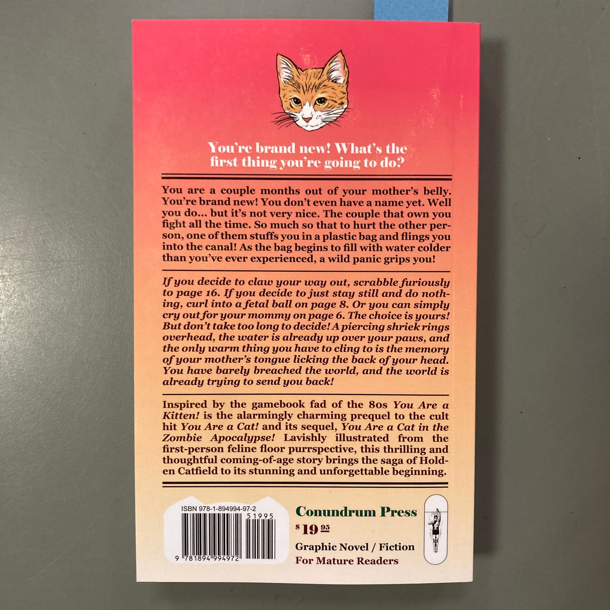 Inspired by the gamebook fad of the 80s You Are a Kitten! is the alarmingly charming prequel to the cult hit You Are a Cat! and its sequel, You Are a Cat in the Zombie Apocalypse! Lavishly illustrated from the first-person feline floor purrspective, this thrilling and thoughtful finale brings the saga of Holden Catfield to a stunning and unforgettable conclusion.