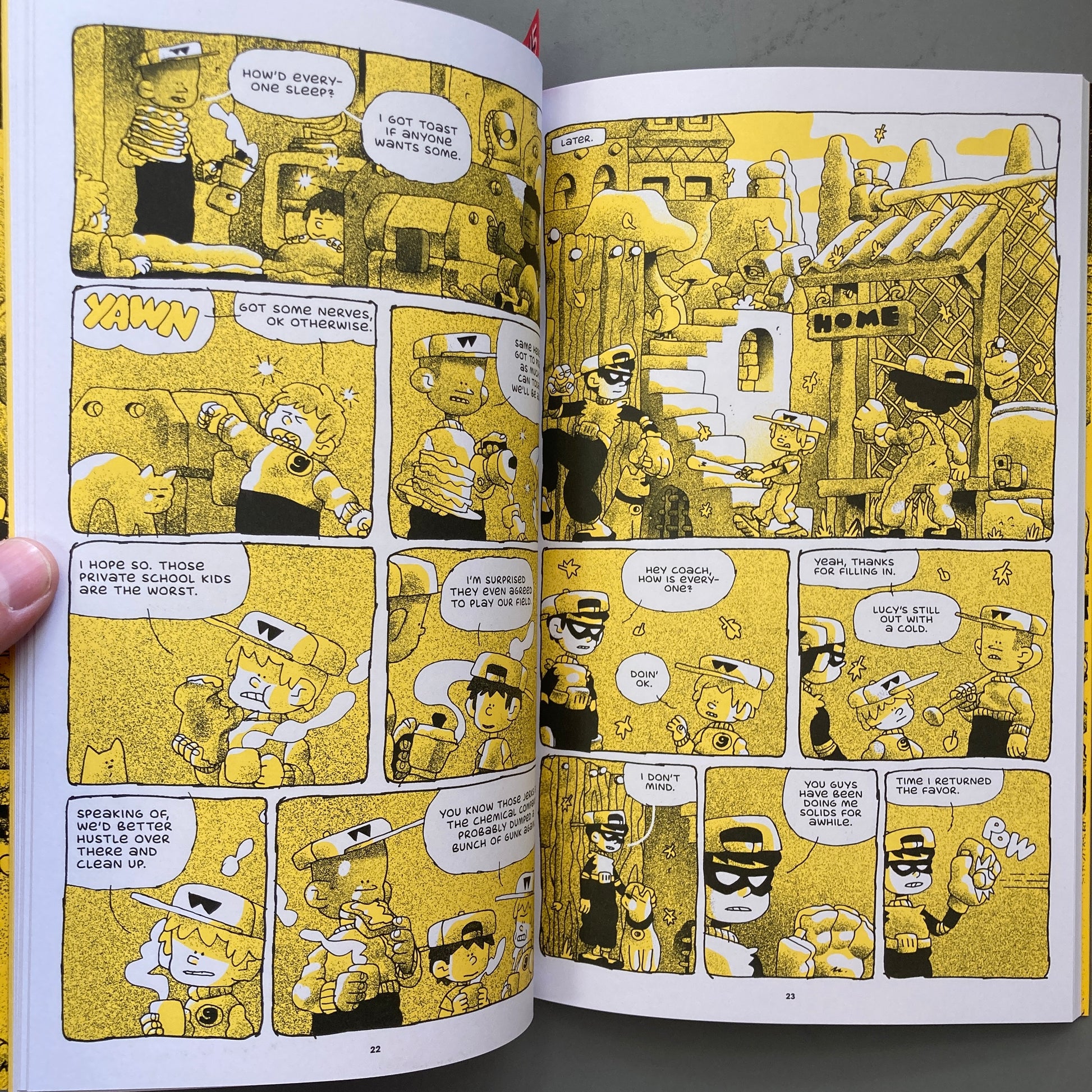 This exciting new middle-grade graphic novel from cartoonist and musician Ben Sears establishes a world that embraces classic superhero, sci fi, and supernatural comics without any irony, executed in a brilliant two-tone color scheme of jet black and mustardy yellow that perfectly suits the spooky fun and fast paced adventure. Young Shadow & the Watchdogs is a page-turner for readers of any age.