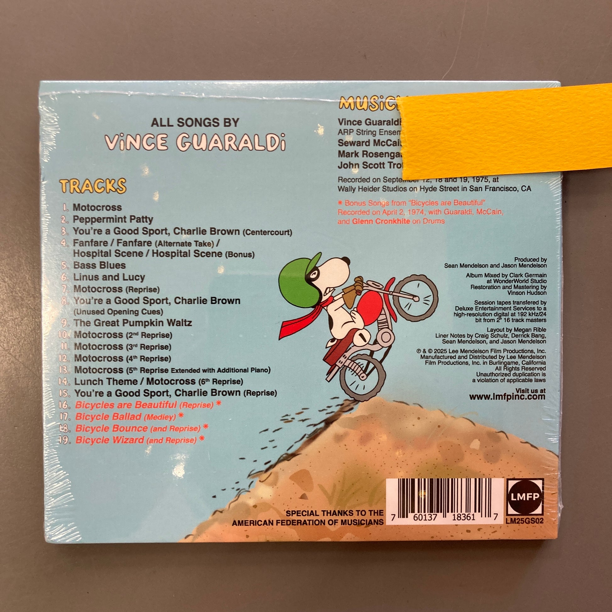 The record Includes fresh takes on "Peppermint Patty" and "Linus and Lucy," and adds a special bonus track, "You're a Good Sport, Charlie Brown (Unused Opening Cues)" (performances left out of the special, that now start the B side of the vinyl). "Motocross" is the featured theme, and there are four additional bonus tracks from the 1974 LMFP film Bicycles Are Beautiful scored by Guaraldi, who is joined on those tracks by McCain on bass and Glenn Cronkhite on drums.
